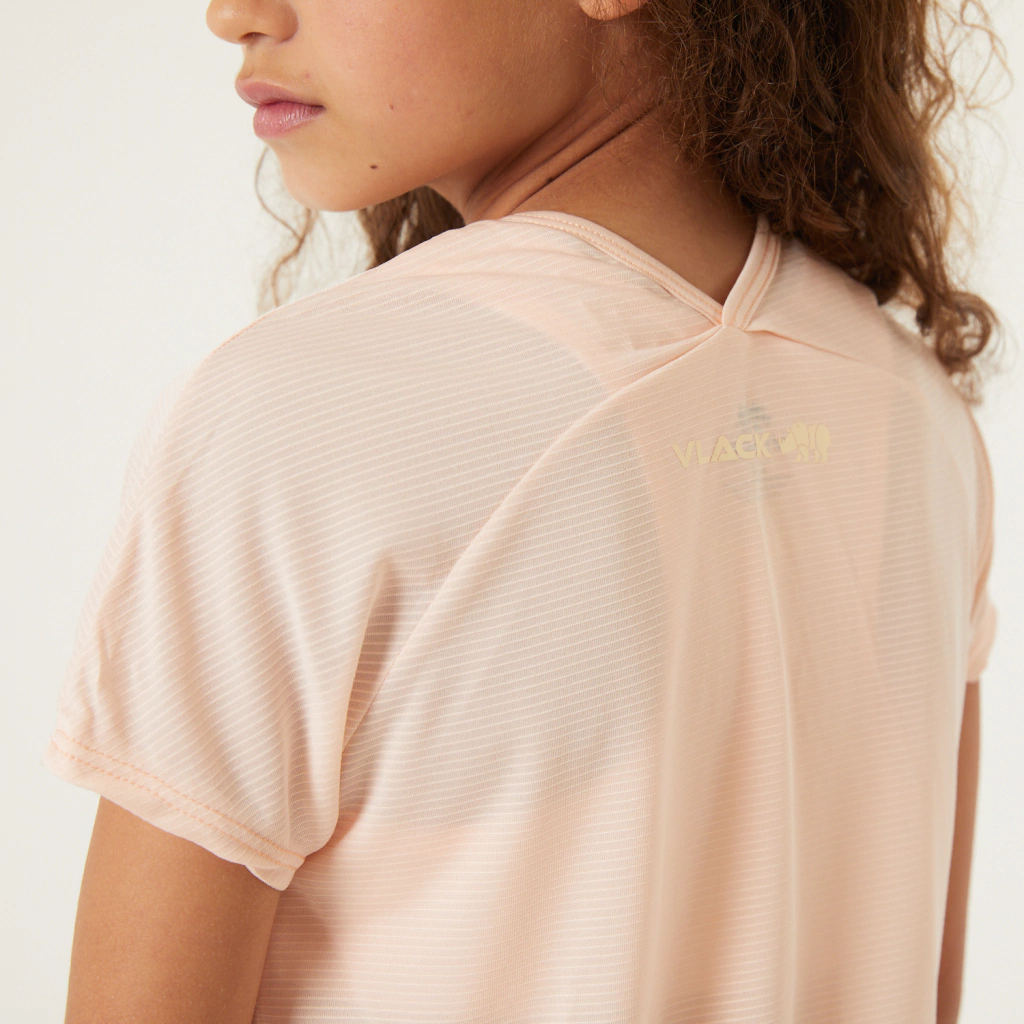 Descubre la ligereza y el estilo de nuestra remera de dama, confeccionada en Multistripe, un textil súper liviano con una sutil textura de rayas horizontales. Su diseño presenta un cuello redondo en el delantero que se transforma en un corte en V en la parte trasera, donde también encontrarás la aplicación de marca en vinilo a contratono. Las mangas cortas ranglan ofrecen comodidad y libertad de movimiento. Ideal para el uso diario, esta remera se adapta tanto a looks urbanos como a tus actividades cotidianas.